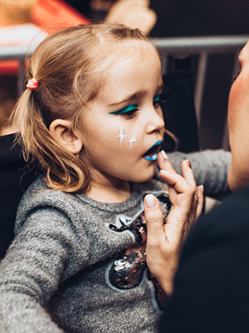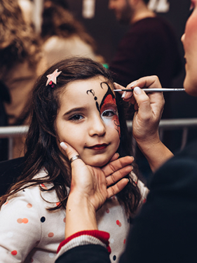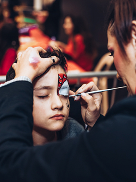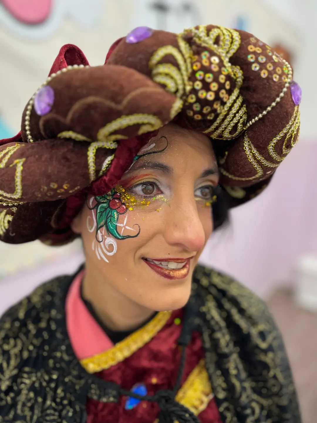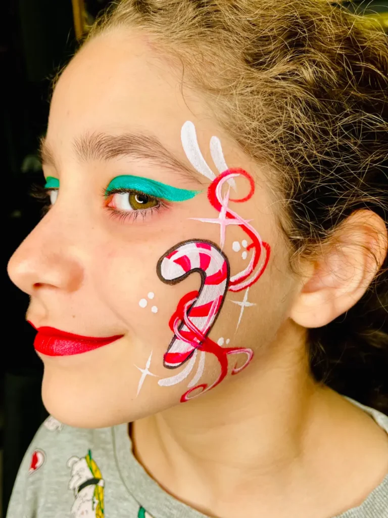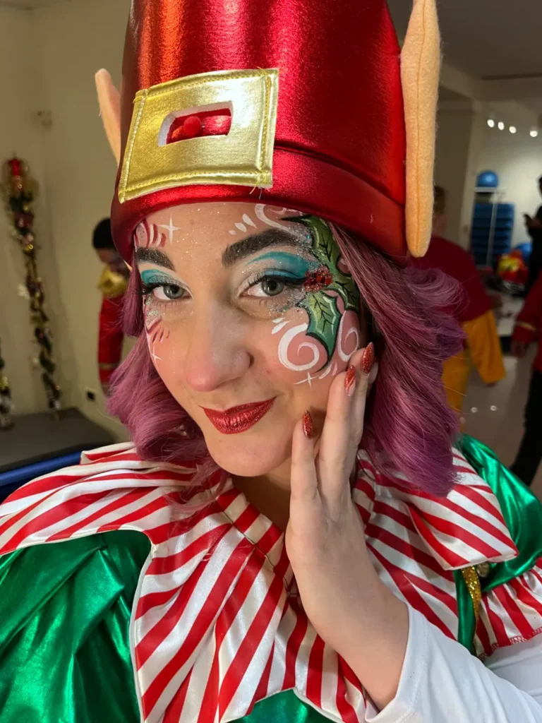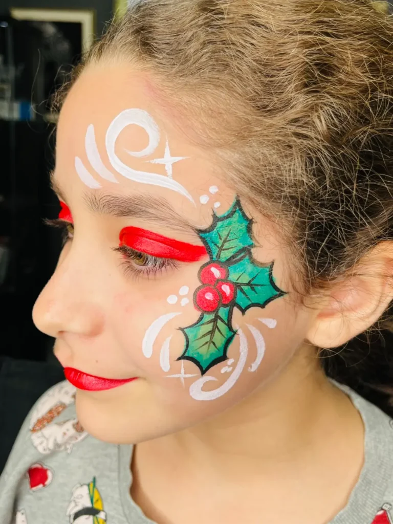 Nuestro servicio de maquillaje navideño en Tarragona y Reus incluye pintacaras de fantasía, con opciones como renos, muñecos de nieve, y personajes navideños para crear una atmósfera mágica en tu evento.